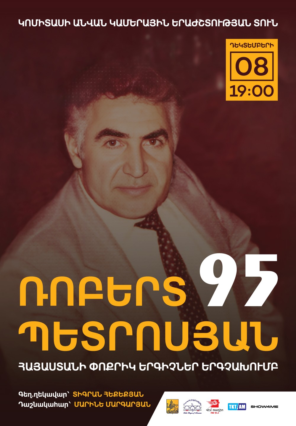 Սույն թվականի դեկտեմբերի 8-ին, Կամերային երաժշտության տանը տեղի կունենա <<Հայաստանի փոքրիկ երգիչներ>> երգչախմբի մենահամերգը՝ նվիրված հայ կոմպոզիտոր Ռոբերտ Պետրոսյանի 95-ամյակին։